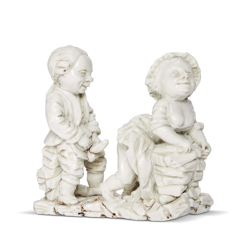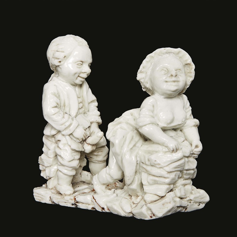 Venetian, circa 1770, A couple of dwarfs in erotic attitude, Manufactory of Geminiano Cozzi, porcelain, 9x8,5x4,5 cm