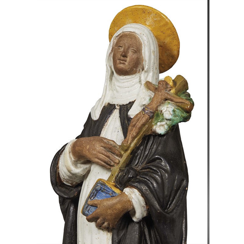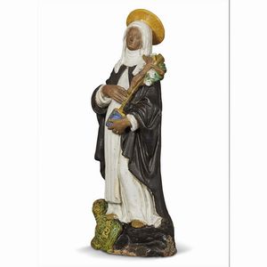 Marco Della Robbia (Fra Mattia), Saint Catherine, circa 1520, partially glazed terracotta in polychrome, 59,5x25x16 cm