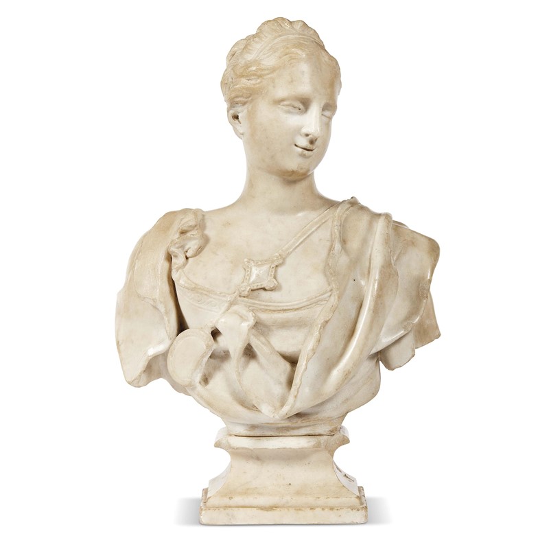 Roman, 17th century, Female bust, marble, 34x23x10,5 cm