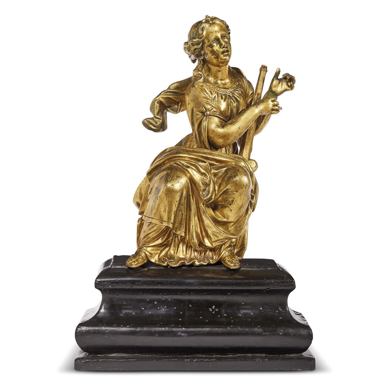 Roman, 18th century, Allegory of Music, gilt bronze, 27x15x14 cm, on ebonized wood base 11,5x25x12,5 cm