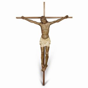 Toscana, secolo XVI CRISTO CROCIFISSO scultura in legno dipinto in policromia con perizoma in stoffa, cm 88x81 [..]