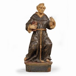 Umbria, fine secolo XVI - inizi XVII SAN FRANCESCO ORANTE in legno intagliato e dipinto, cm 77x38x22 Umbrian, [..]