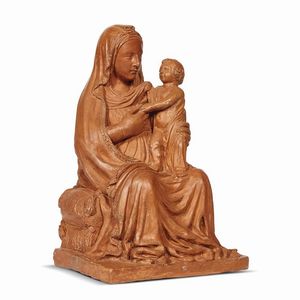 Bottega di Benedetto da Maiano, Firenze, seconda metà secolo XV MADONNA COL BAMBINO gruppo in terracotta, [..]
