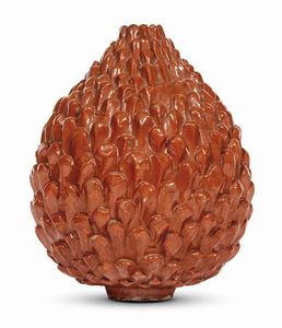 Toscana, secolo XVIII VASO A PIGNA in terracotta invetriata, cm 22x17x17 Tuscan, 18th century, a pinecone-shaped [..]