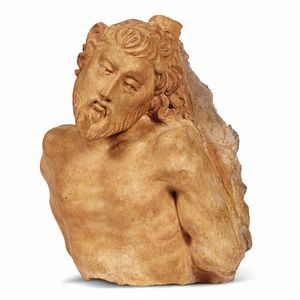 Lombardia, secolo XV ECCE HOMO scultura in terracotta, cm 30x26x19 Lombard, 15th century, Ecce Homo, terracotta, [..]