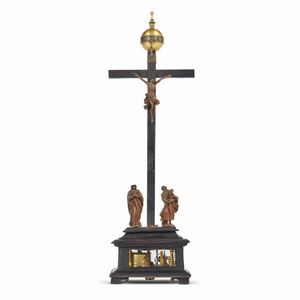 Lombardia, Bottega dei Fantoni, inizi secolo XVIII OROLOGIO A CALVARIO in legno e bronzo dorato, sfera con fascia [..]
