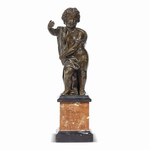 Roma, fine secolo XVII PUTTO in bronzo, le braccia nell’atto di reggere un oggetto oggi perduto, forse una [..]