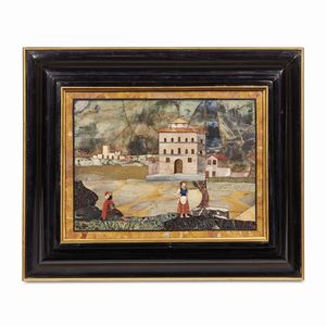 Firenze, seconda metà secolo XIX PLACCA in pietre dure, raffigurante scena che ritrae una contadina e [..]