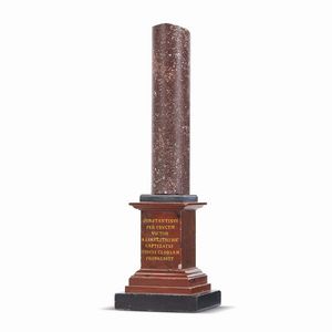Roma, secolo XIX MODELLINO ARCHITETTONICO Costituito da un frammento di colonna in porfido su basamento di forma [..]