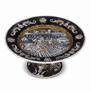 Limoges, secolo XIX ALZATA in smalti policromi a rilievo su fondo nero, derivata direttamente dalla serie de [..]
