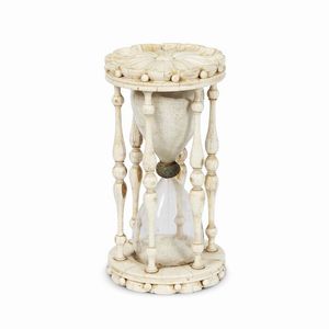 Firenze, secolo XX CLESSIDRA in vetro e osso, sei lunghe colonnine a forma di balaustra poggianti su basi circolari [..]