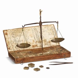 Italia, secolo XVIII BILANCIA DA MONETE custodia cm 25x12 Italian, 18th century, A small balance for coins, [..]