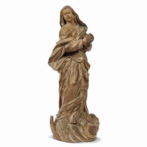 Emilia, secolo XVIII MADONNA in terracotta, cm 53x22x20 Emilian, 18th century, Madonna, terracotta, 53x22x20 [..]
