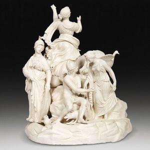 Filippo Tagliolini (Fogliano di Cascia 1745 - Napoli 1809) GIUDIZIO DI PARIDE, 1790-1795 gruppo di biscuit, cm [..]
