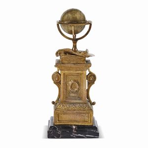 Firenze, fine secolo XIX PIEDISTALLO CON MAPPAMONDO in bronzo dorato, globo con sfera girevole posto su libro [..]