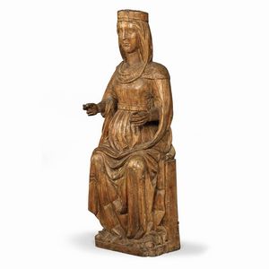 Abruzzo, prima metà del sec. XV MADONNA IN TRONO (MADONNA DEL PARTO) statua in legno, cm 124x45x34 Abruzzese, [..]
