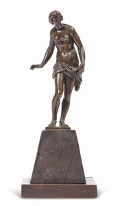 Roma, secolo XVIII VENERE AL BAGNO in bronzo, alt. cm 18, su supporto in legno ebanizzato di forma troncopiramidale [..]