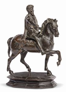 Roma, secolo XVIII MARCO AURELIO in bronzo, su base ottagonale modanata, cm 28x22x12 Roman, 18th century, Marcus [..]