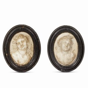 Italia centrale, secolo XVIII ALLEGORIE DELL’AUTUNNO E DELL’ESTATE due rilievi ovali in marmo bianco [..]