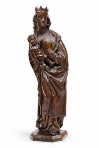 Scuola francese, secolo XVI MADONNA COL BAMBINO, in legno intagliato, alt. cm 106 French School, 16th century, [..]