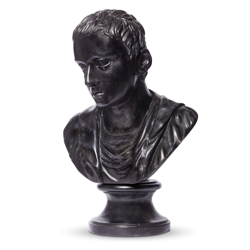 Roman School, Neoclassical Period, A bust of a young man, basalt, inscripted A. Torwalsen, 52,5x33x27 cm