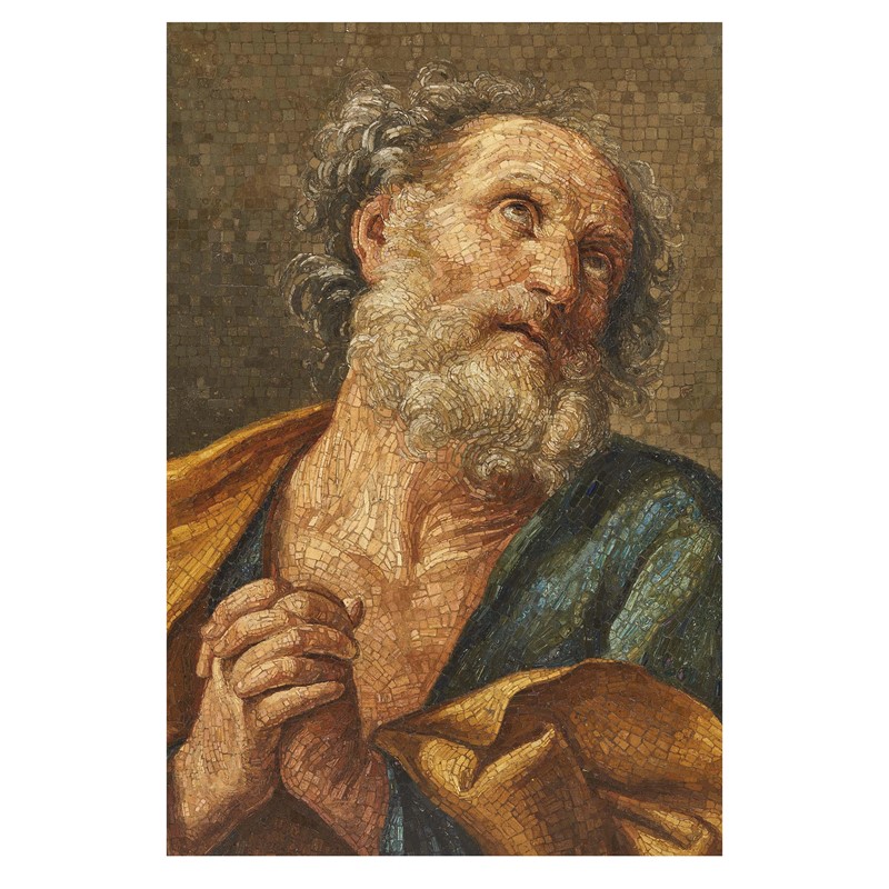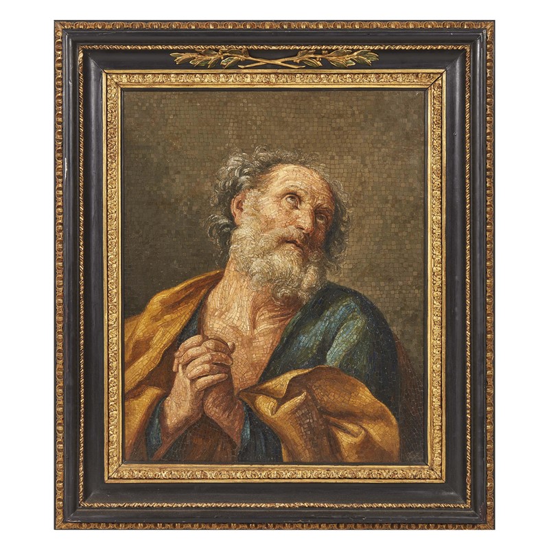 Roman, Vatican Mosaic Studio, first half 18th century, Saint Peter weeping (after Guido Reni), mosaic on iron cassina, 87,5x63 cm, within Salvator Rosa type ebonized and gilt wooden frame, 104x89 cm