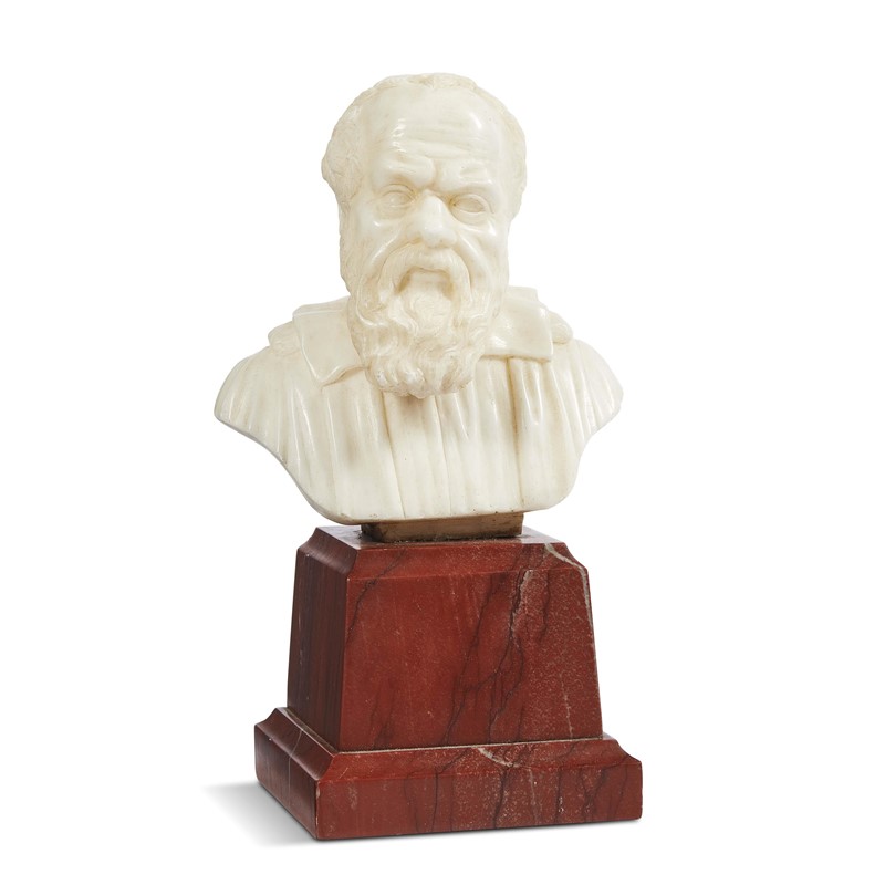 Tuscan, 18th century, A bust of Galileo, marble, h. 15 cm on a marble base, 24x14x11 (overall)