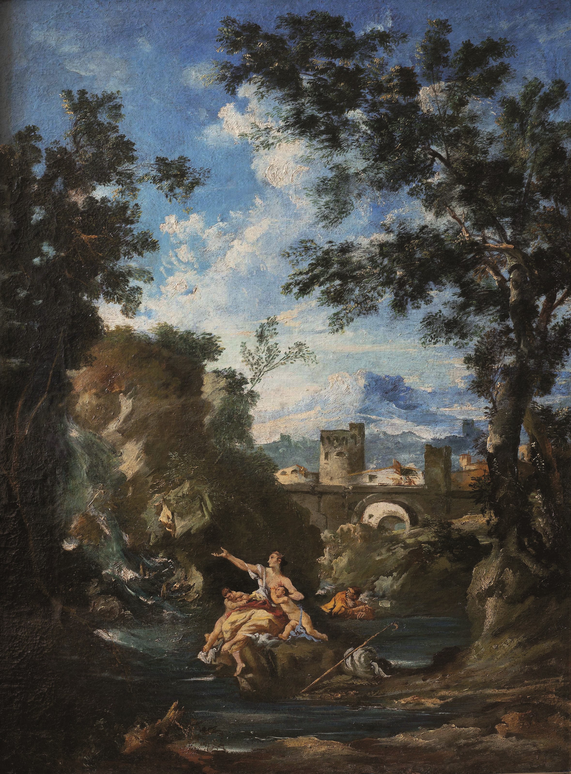 Angelo Visoni (XX secolo) Paesaggio in stile settecentesco con famiglia di pasto [..]