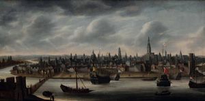 Scuola olandese del XVII secolo Veduta della città di Anversa