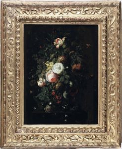Scuola olandese del XIX secolo Natura morta con fiori e nido