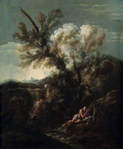 Artista fiammingo attivo a Roma nel XVII secolo Paesaggio con viandanti
