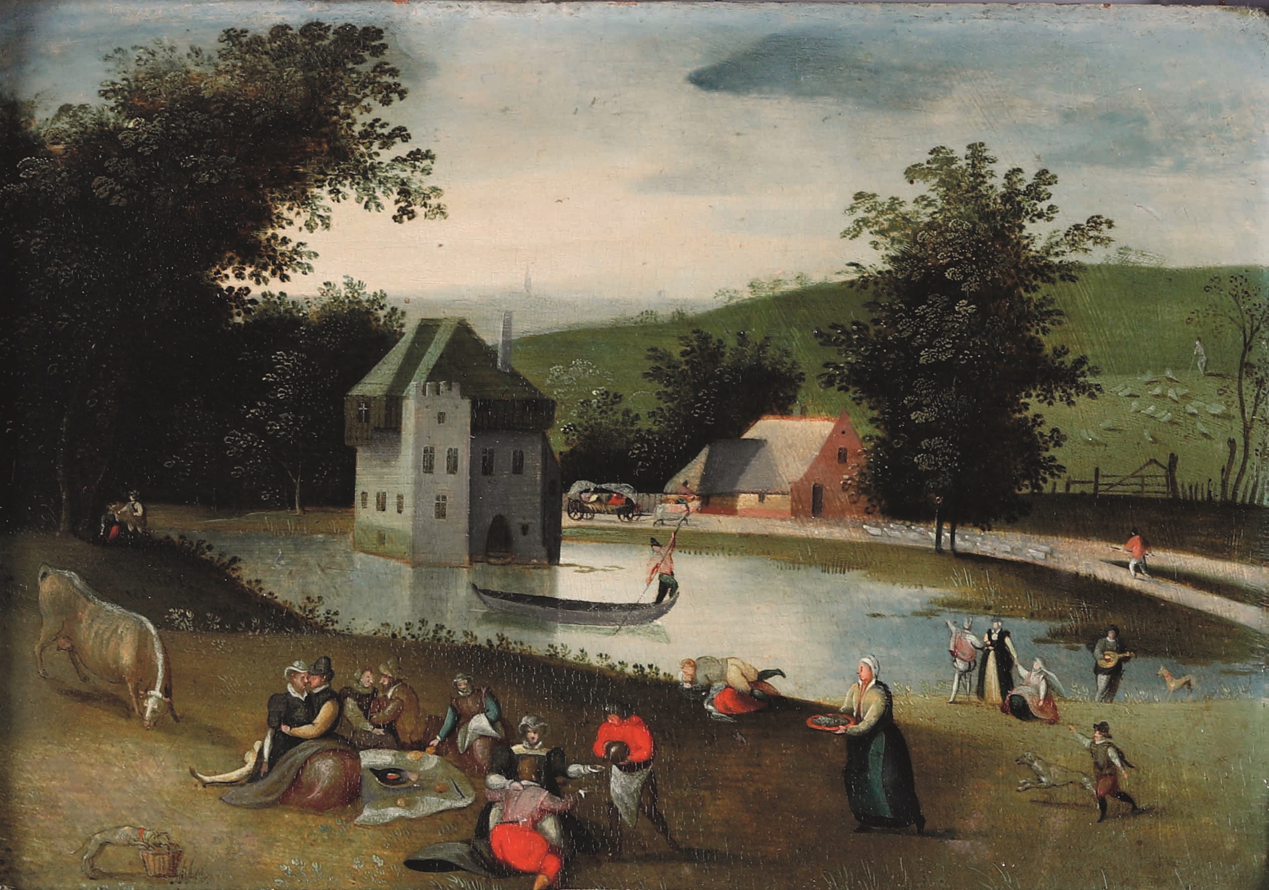 Scena campestre con laghetto