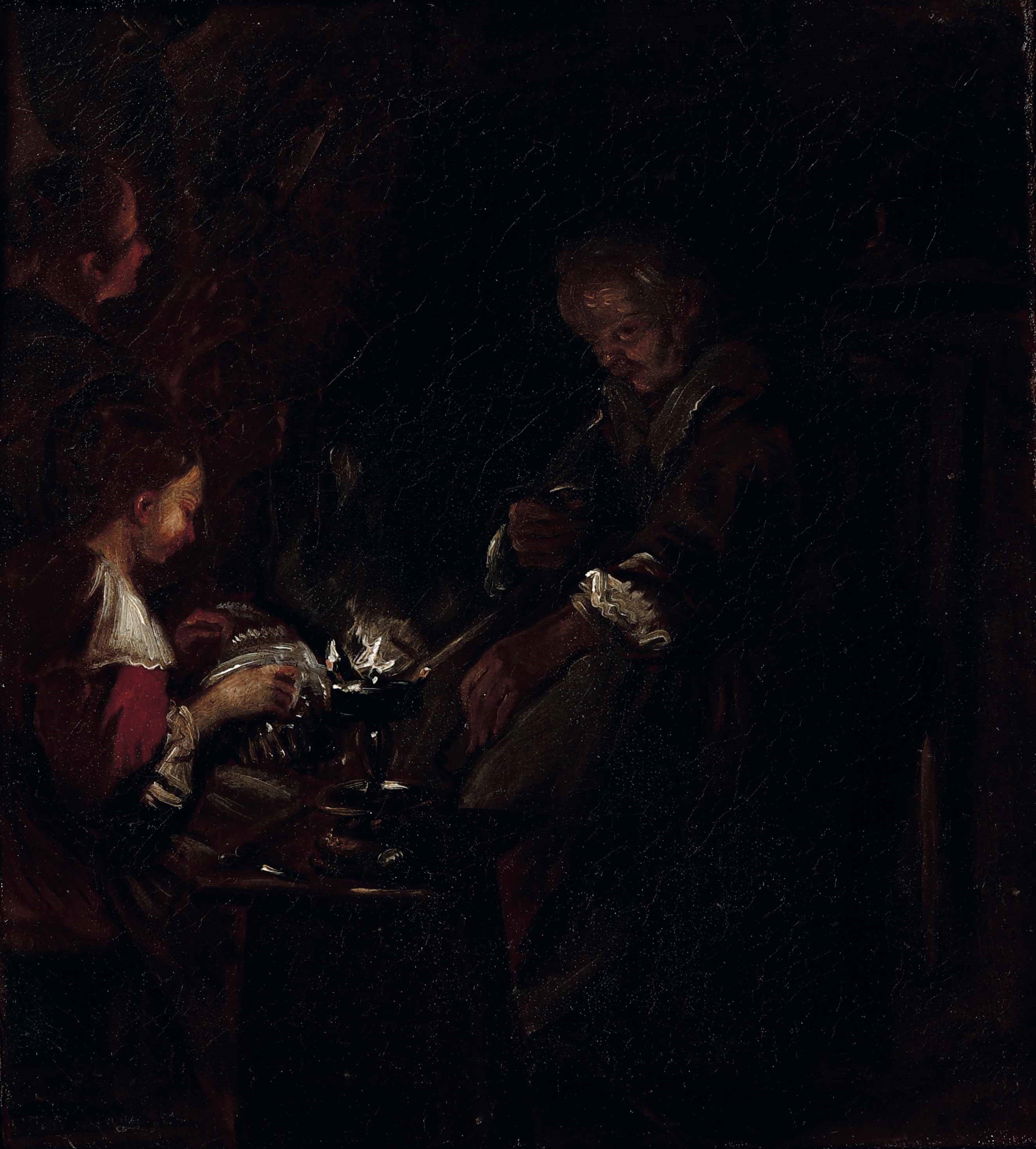 Scuola fiamminga del XVII secolo Scena di interno con donne al lavoro