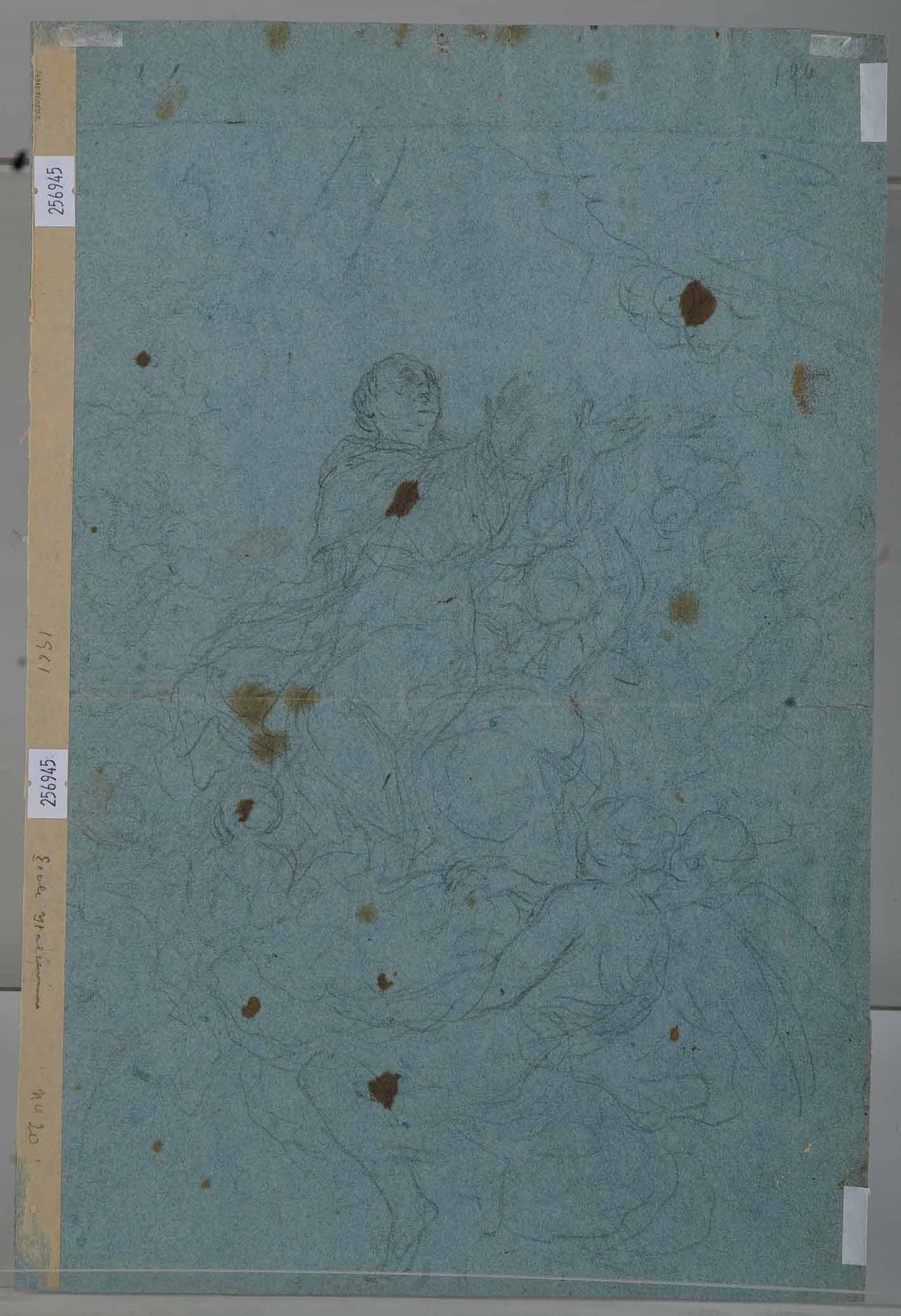 matita nera e bianca su carta preparata azzurra, Largh. 255 - Alt. 385 mm