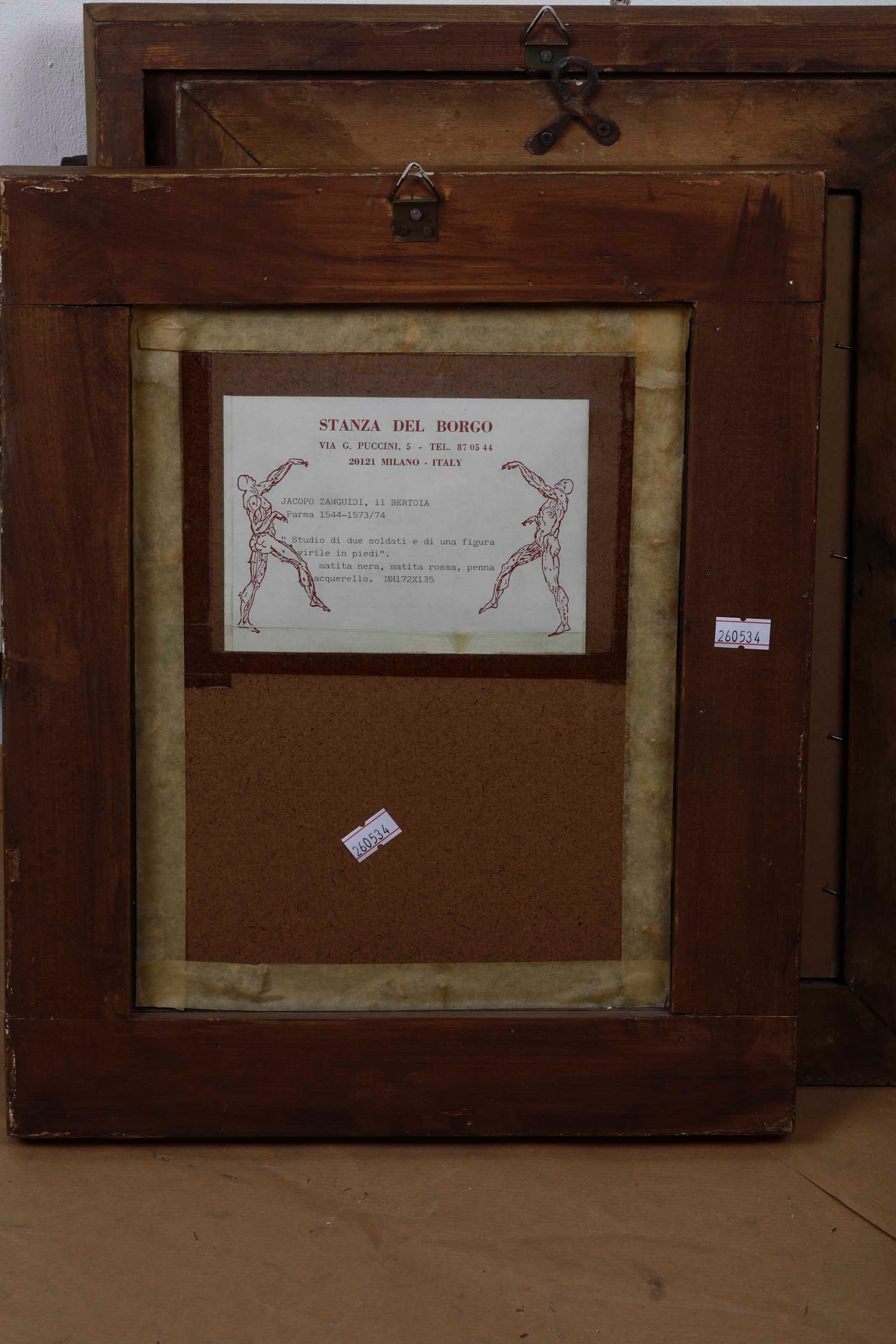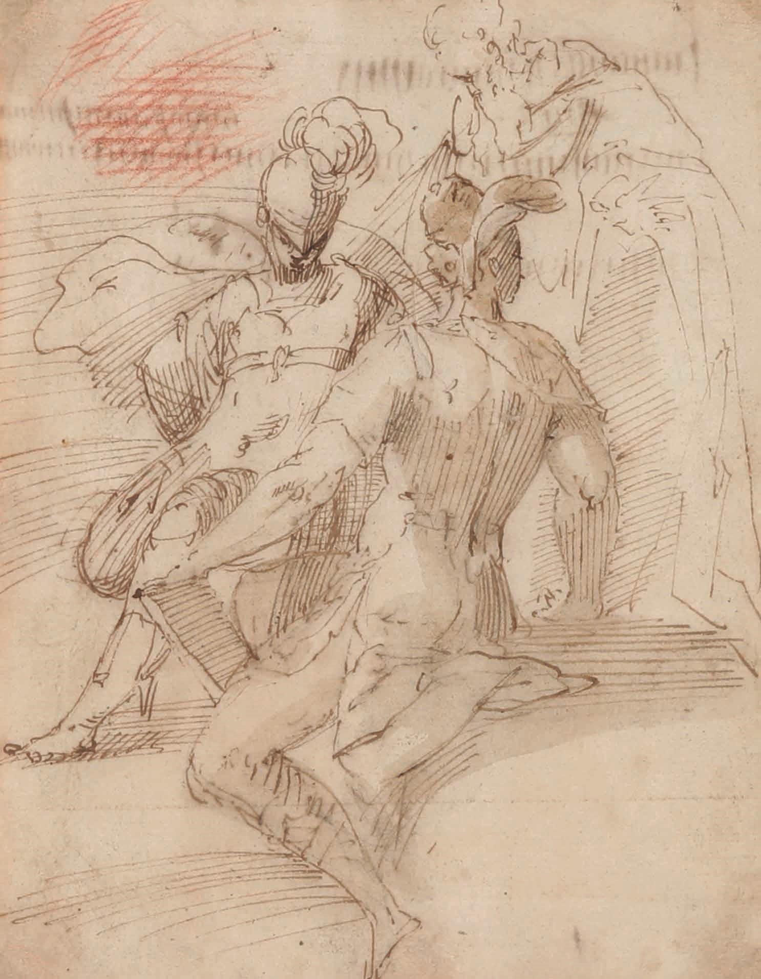 matita nera, matita rossa, penna, inchiostro bruno e acquerello su carta, Largh. 130 - Alt. 165 mm