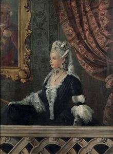 Scuola del XVIII secolo Ritratto di gentildonna in un interno
