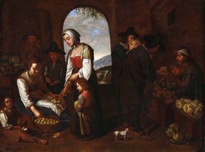 Artista fiammingo attivo a Roma nel XVII secolo Scena di mercato