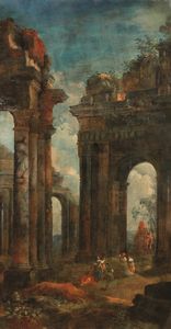 Scuola romana del XVIII secolo Capricci con rovine classiche e figure