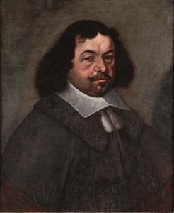 Scuola del XVII secolo Ritratto di uomo con giubba rossa