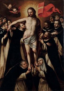 Scuola spagnola del XVII secolo Frati domenicani in adorazione di Cristo