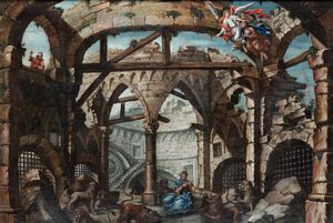 Scuola italiana del XVIII secolo Scorcio architettonico con la liberazione di San [..]