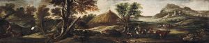 Scuola romana del XVIII secolo Paesaggio con pastori e armenti