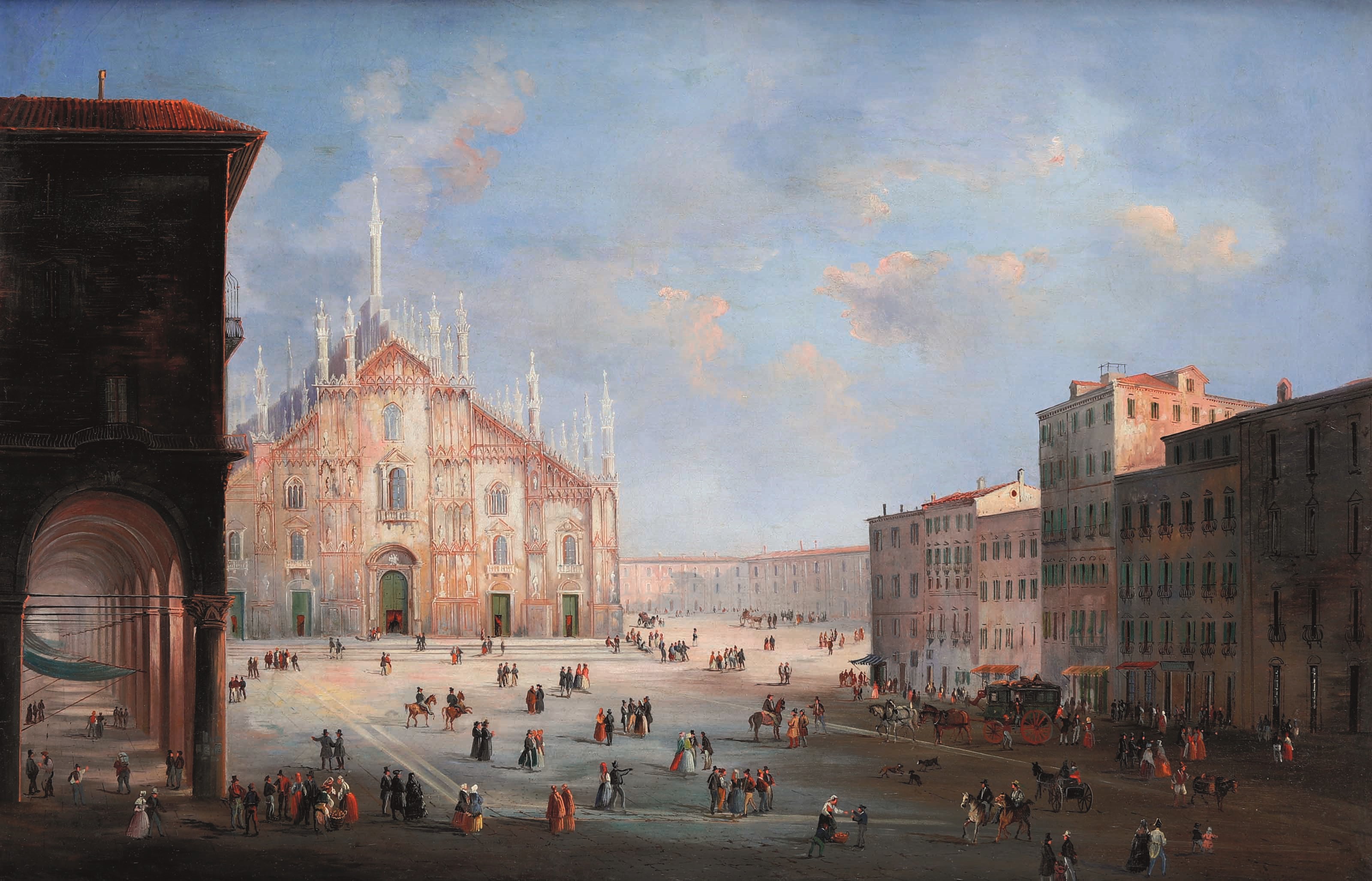 Scuola lombarda dell'inizio del XIX secolo Veduta di piazza del Duomo a Milano
