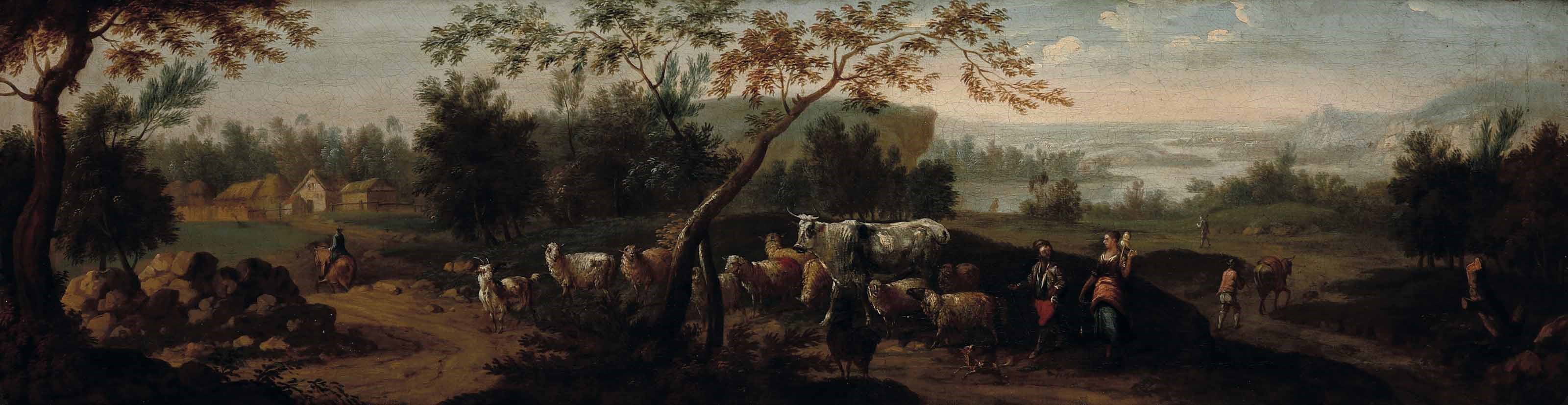 Scuola romana del XVIII secolo Paesaggio con pastori e armenti