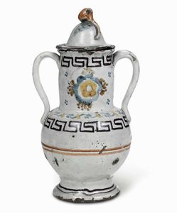 Vaso biansato con decoro a fiori e ghirlande di foglie Firenze, Manifattura Cantagalli, [..]