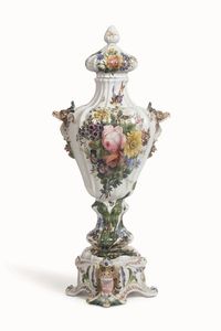Vaso biansato con decoro a fiori e ghirlande di foglie Firenze, Manifattura Cantagalli, [..]