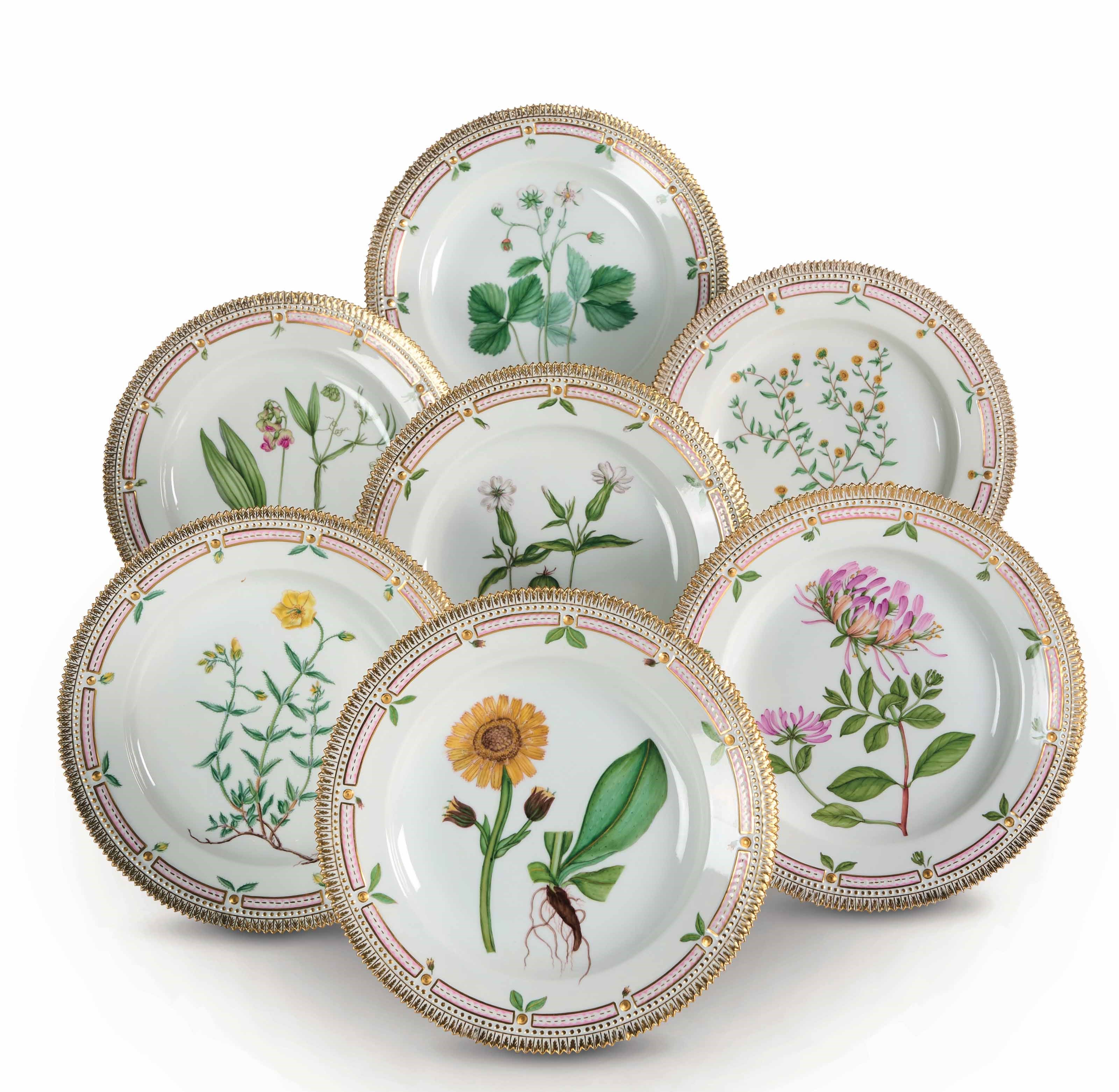 Sette piatti piani dal servizio Flora Danica