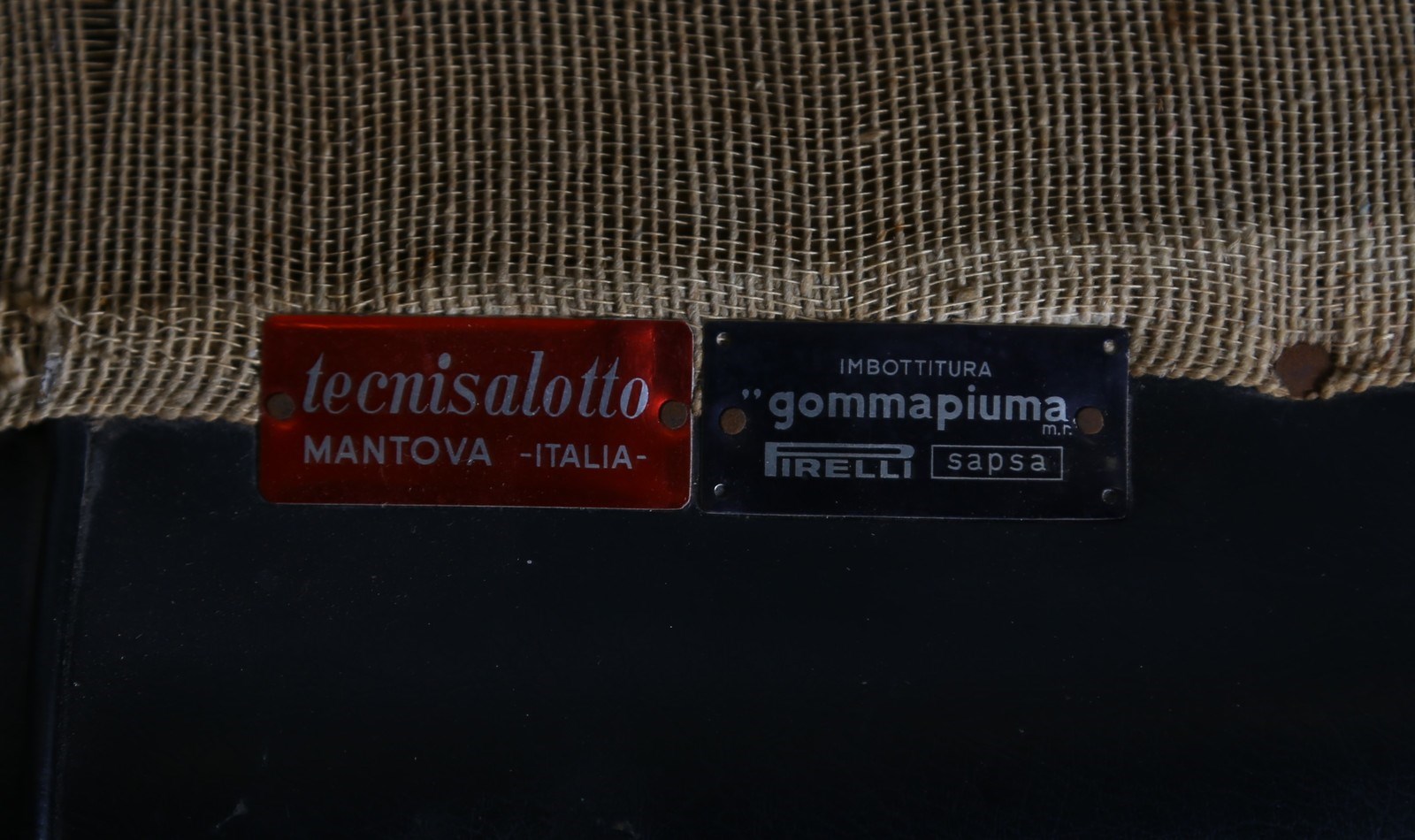 Anni Settanta, etichetta della manifattura. Misure ottomano: 33 x 62 x 57 cm