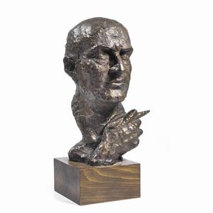 GIOVANNI PAGANIN (Asiago 1913 - Milano 1997) Ritratto di Alain Toubas scultura in bronzo h cm 31, su base cm [..]