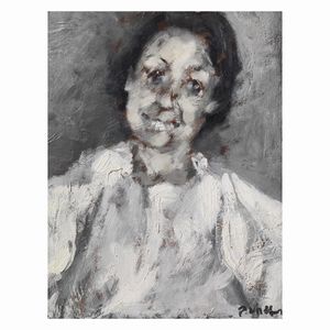 PAOLO VALLORZ (Caldes 1931 - Parigi 2017) Angelo in camicia blu olio su tela cm 73x60 firmato in basso a destra [..]